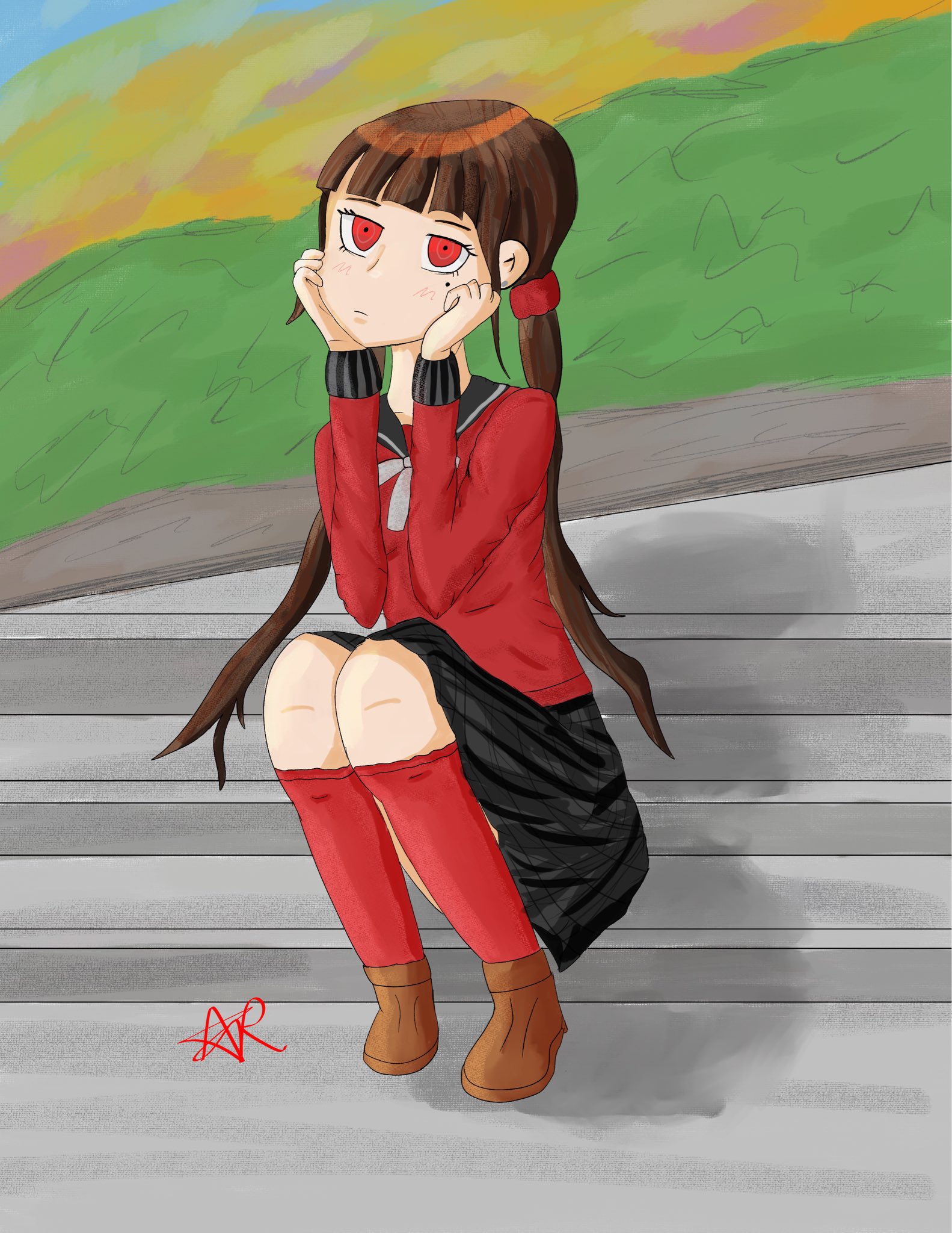 October 2025. clip studio paint. #Drawganronpa ("inktober" challenge). Prompt: Scene redraw. Trial 1 Aftermath - Kaede Akamatsu
